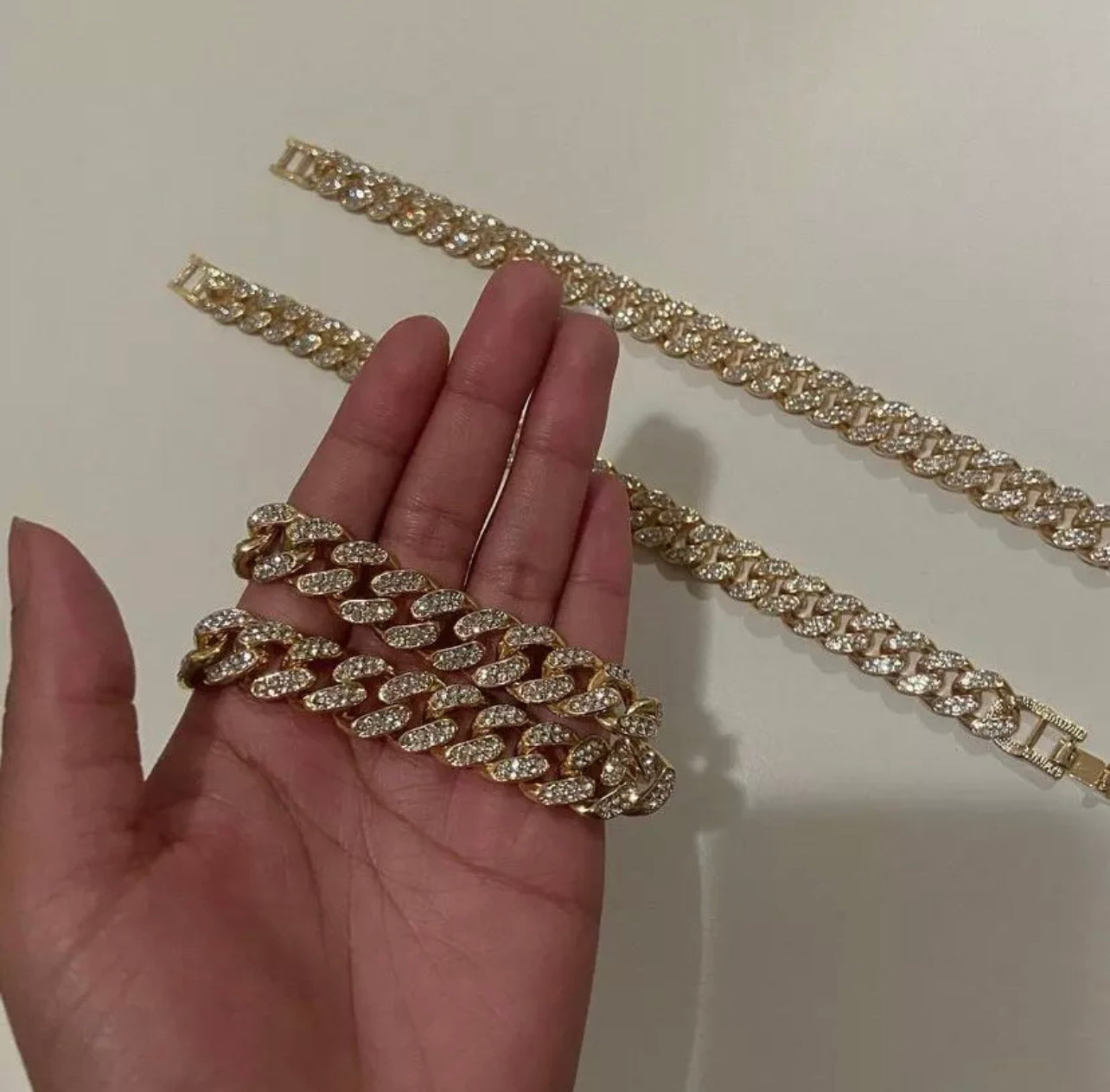 •The quality of the rhinestone anklet is impeccable. This piece is heavy and the best quality for the price. The design catches the light even at night. they shine just like diamonds